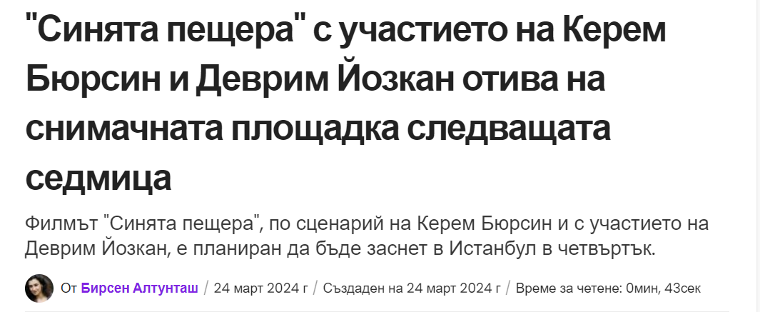 Има статия от Бирсен за Керем и предстоящия му филм Wink