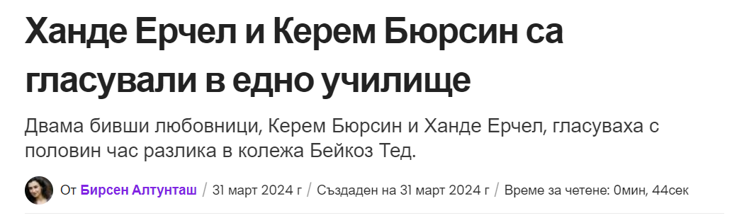 Явно турският артистичен елит живеят в кв. Бейкоз. В същият комплекс, в който живеят Ханде и Керем. Ето че и Баръш Ардуч (за когото се твърди, че може да е евентуален партньор на Бамби), заедно с неговата половинка Гюпсе Йозай са гласували в същото училище.