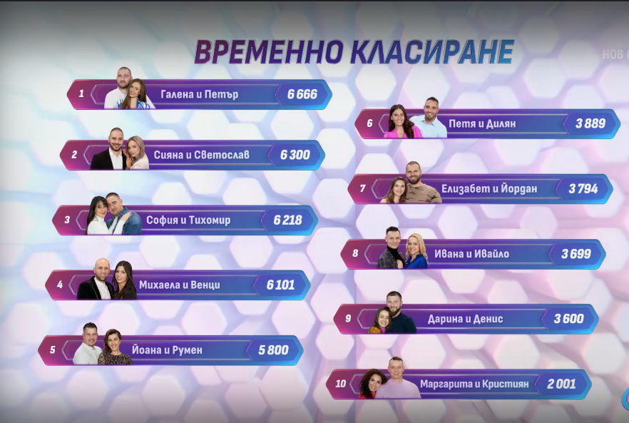 За сега, 5 двойки, за наша изненада, Румен и Йоана  водят с 6600.