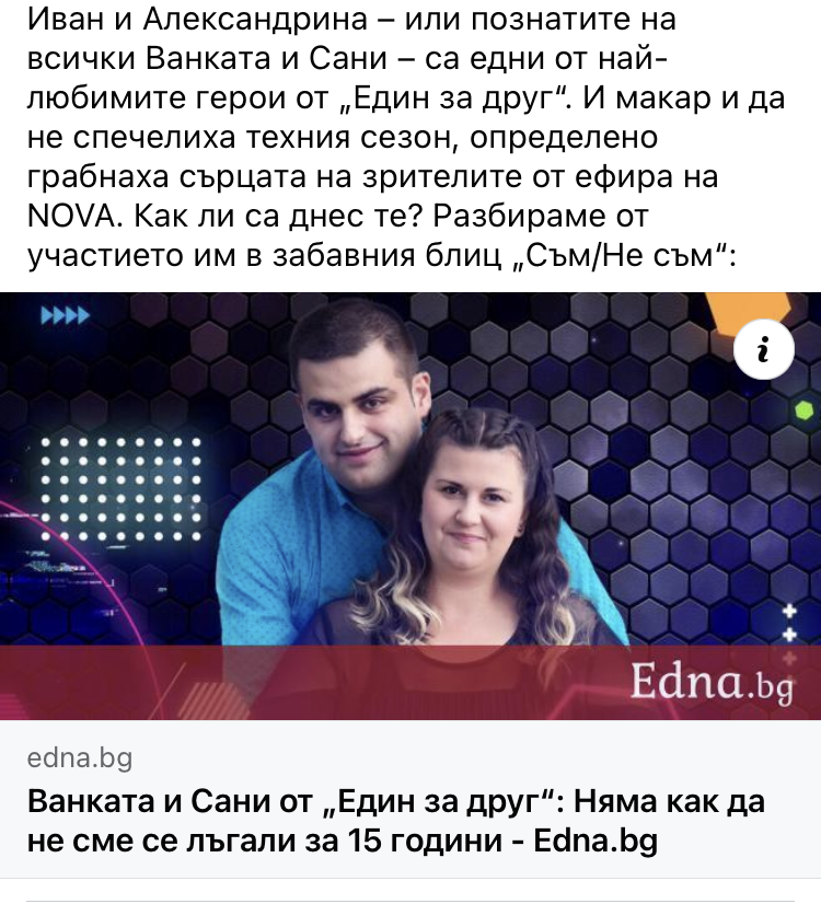 Естествено. На мен ми бяха от най-противните двойки.  И то заради Иван. Иначе против Саня нямам нищо.