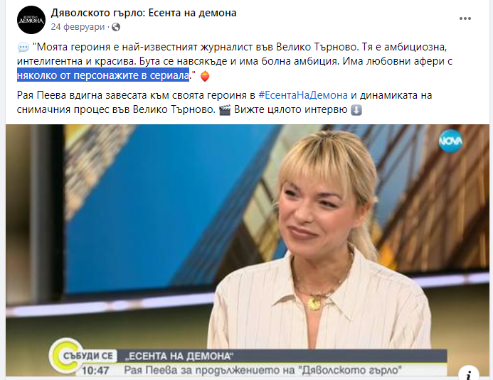 Ръката в казана си е баш женска. Личи си. И аз мисля, че ще е Рая Пеева това. Имаше интервю с нея в "Събуди се" по Нова и каза, че героинята й е с болна амбиция, както и, че има любовни афери с няколко от героите.