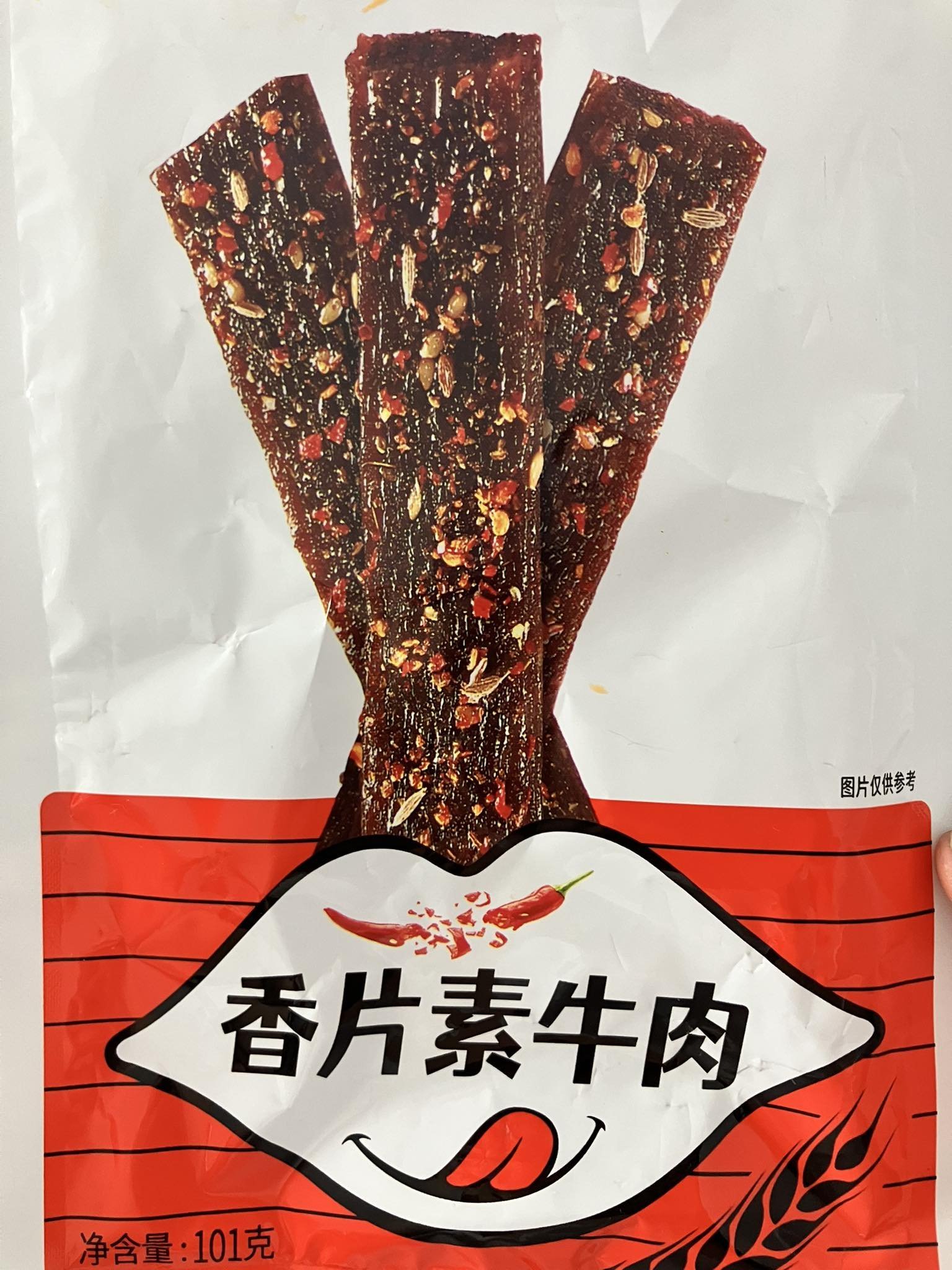 Тестени ленти с вкус на месо (имат различни видове) плуващи в лют соев сос. Първо си ги взех от София, в Китай също ги хапвах като разядка. Имитират сушено месо.