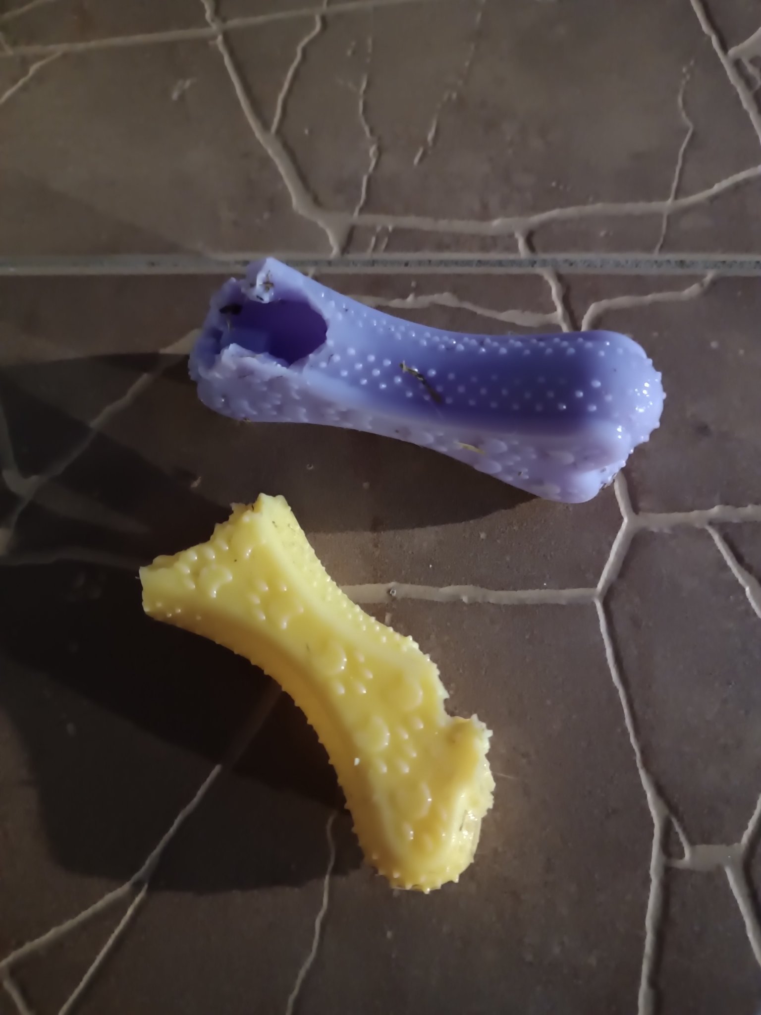 ЕЕееееееееееее, вашите кучета не са хора!!!!!!! Същите две Рая ги изяде за три дни. Има още един вид пискалки-кокалчета, но са по-плътни и жилави - с тях се справи за 5 /ПЕТ/ минути за всяко.