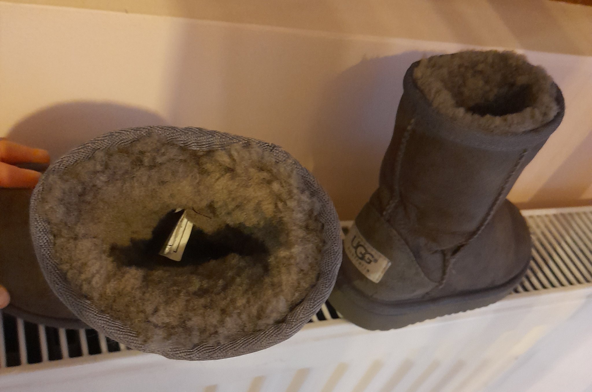 агнешка кожа и гъста вълна отвътре. Изпрах ги в пералнята с гел за деликатни, кожата си остана мека. Смятам да ги импрегнирам..