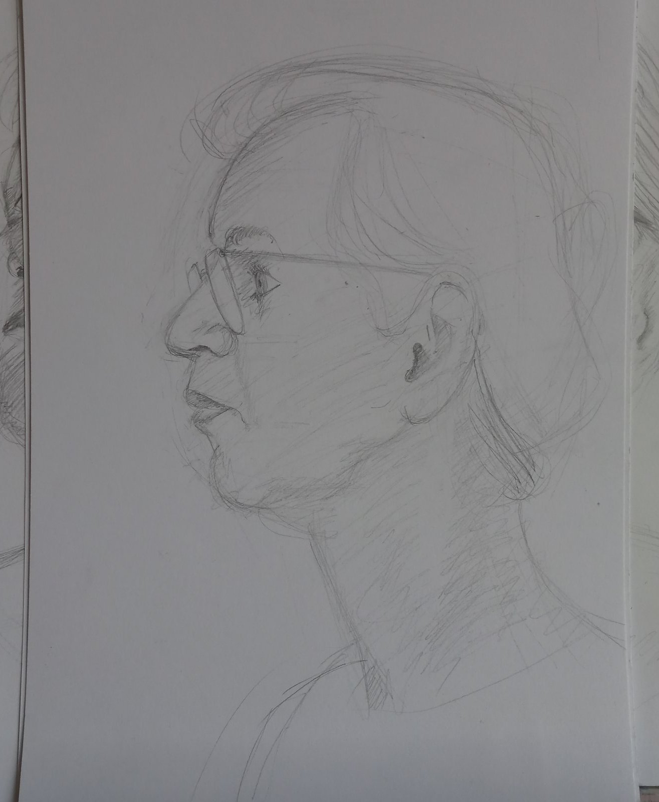 Хайде още една бърза скица на жив модел.  Казва че му е трудно да влезе в 15 минути, особено когато е начало на занятието.  Обаче се наблюдавал  "ефект на загрявка", след първите 2 скици  нещата "вървели" по-бързо.