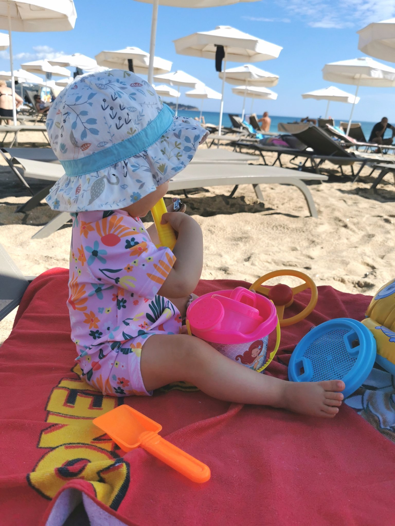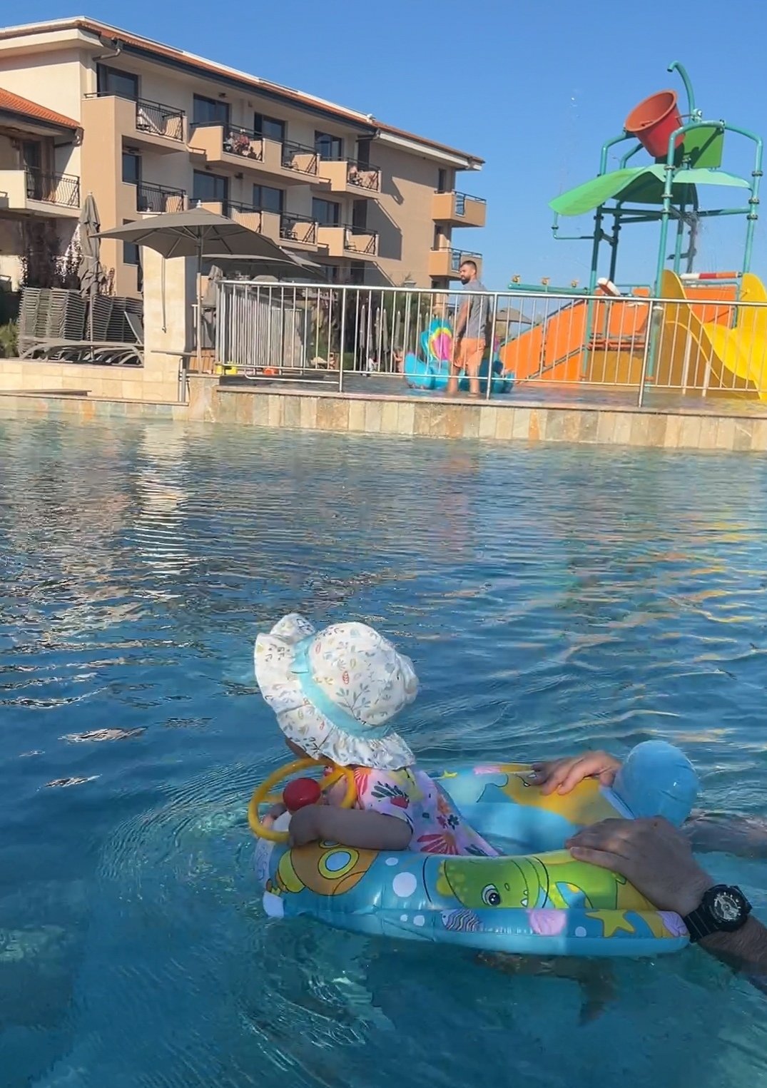 Иначе да ви я похваля. Представи се чудесно на морето. Не ми се тръгваше. Макар да не уцелихме време и да не можахме да я топнем в морето, все пак поплува един ден в детския басейн. Беше много послушна и в страхотно настроение. Закачаше се с други гости на хотела по време на храненията ни в ресторанта и спеше много по-пълноценно отколкото като сме си вкъщи. Догодина мислим да отидем поне 2 пъти и по-рано, че в България септември е късно за море с малко дете.