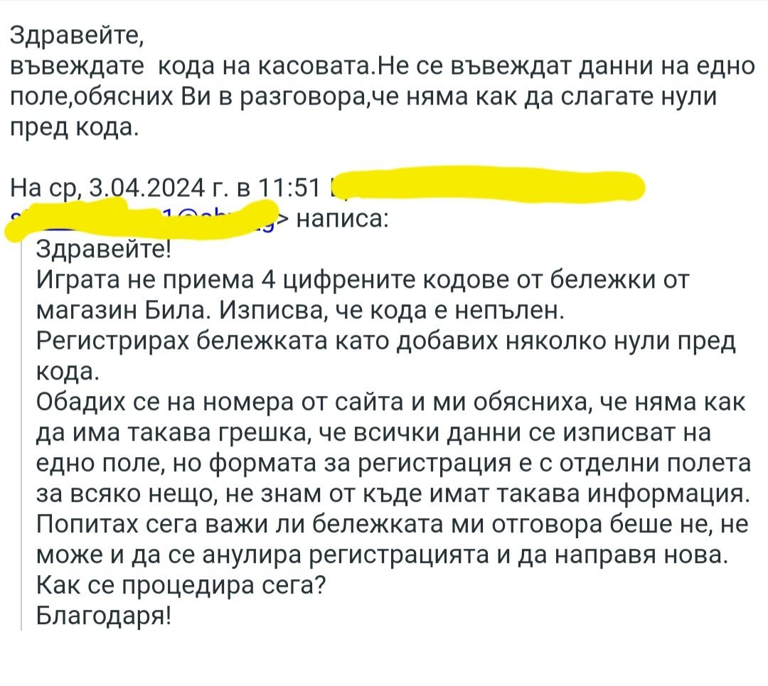 Звънях им, любезен господин ми отговори, че няма проблем за нулите, щом зад тях бил номера. За бележките на Билла.