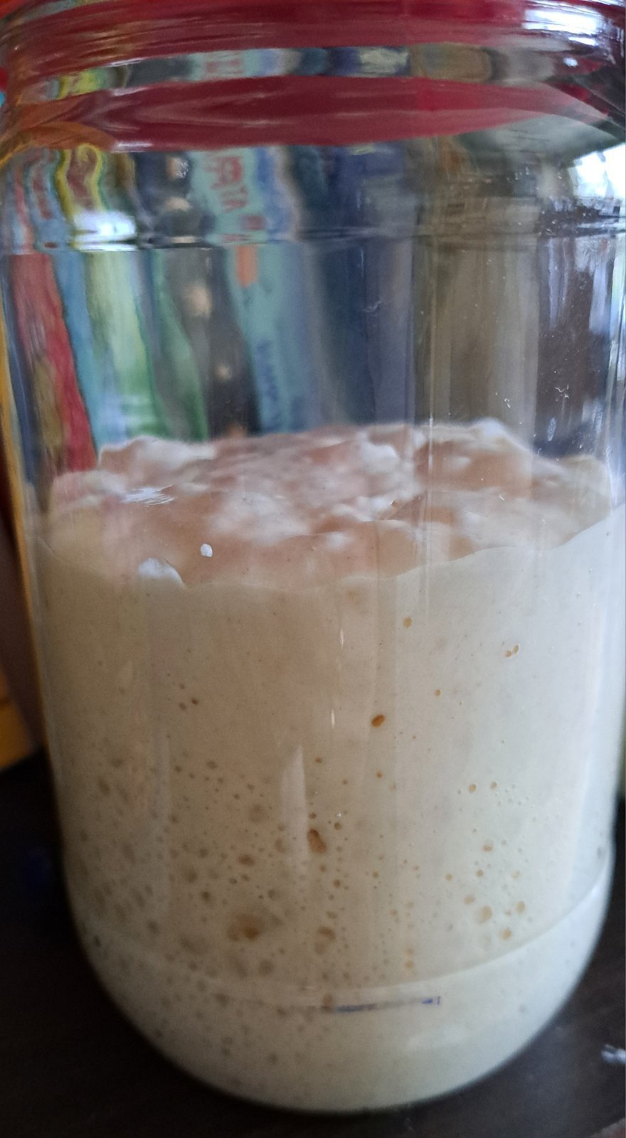 По изключение (друг път не е било на Велики петък) и аз днес ще меся, понеже утре трябва да дам козунака, който ще е и с кокосови мляко и масло ( поради непоносимост към лакотозата на получателя), а пък съм с Квас, който си иска време, а държа на стденото/забавено втасване.  Забърках млякото и малко захар, чакам Квасът ми да е готов и ще замеся  сладката закваска/ стартер.