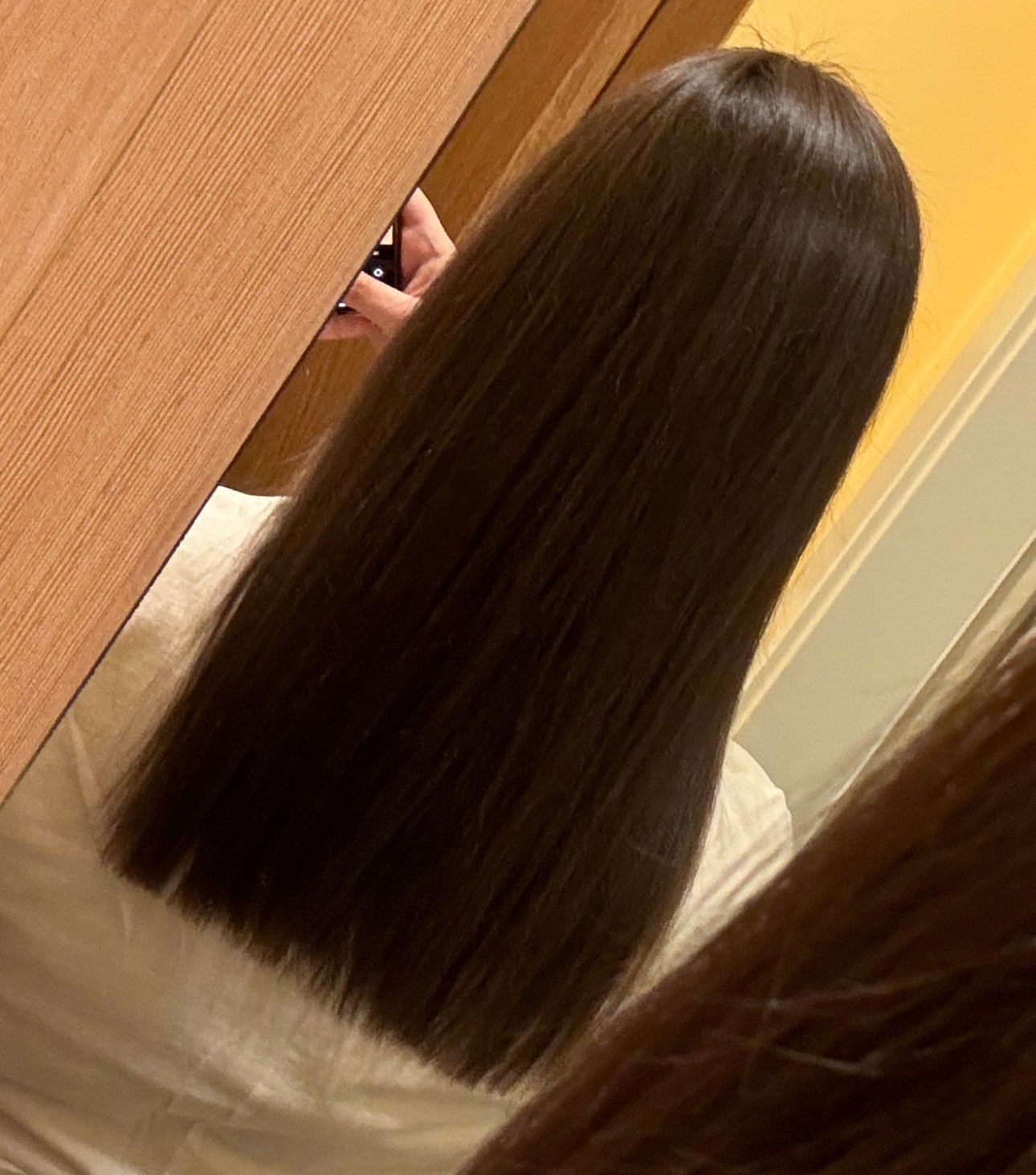Имам права коса, с фин косъм и мазен скалп. Мия косата си през ден, максимум два. Ползвам сешоар винаги, защото косата ми изсъхва доста бавно сама (с изключение на връхчетата, които са по-изтощени). Не е третирана химически и я подстригвам на 3 месеца (връхчета и цъфтеж по дължините).