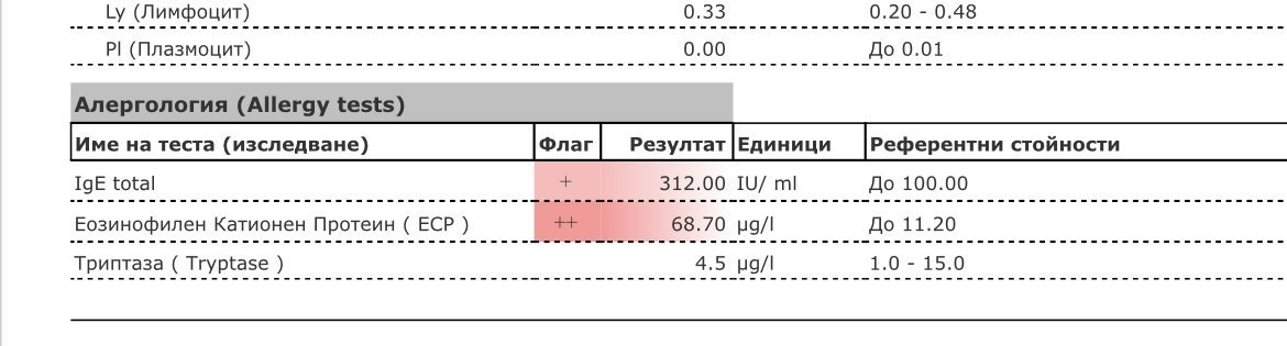 От две години имах ужасна кашлица. Когато стигах до големи пристъпи, в спешните отделение ми изписваха кортикостероиди и инхалатор и ми минаваше. Личната ми изписа Рупафин. Алерголозите при които минах тогава ми казаха да спра всичко от списъка. Лошото е,че имам други проблеми, заради които накрая останах на пуешко с краставици. Тръгнах пак по лекари, да търся начин или терапия, с която да намаля поне някои стойности и да спря възвърналата се кашлица. Петък съм отново на лекар, но ми се иска ако има някой в такава ситуация да сподели съвет или хапчета или нещо, което на него му се е отразило добре. Нямам дерматит. Явно имам бронхиална астма. Не ми е много ясно, какво да правя с пчелите. И не си представям никога повече да не вкуся нито едно картофче 😅