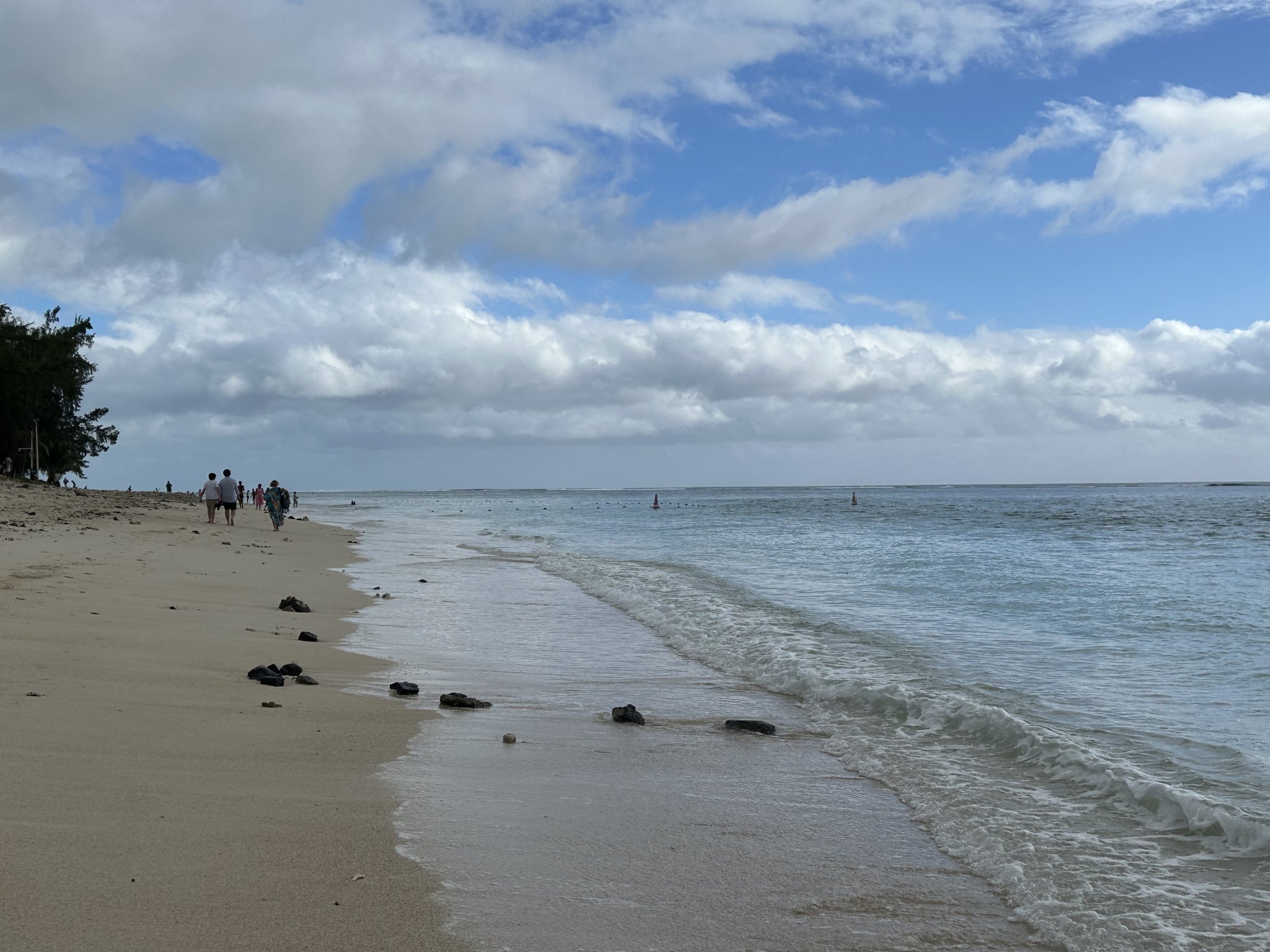 Днес стигнахме до половината на пътя за водопада. Само 1,5 км извървяхме. Заваля и пътя до там- общо 3,2 км в посока, беше по обли, хлъзгави,  мочурливи камъни. Очаквах нещо еко пътека, въжени мостове и от. Нищо подобно! Сами със себе си и без обхват бяхме! Преценихме, че в този си вид няма как да покоряваме тоз див пейзаж… Ходихме до друг известен плаж на Мавриций, ядохме сладоледи и обядвахме местни риби.