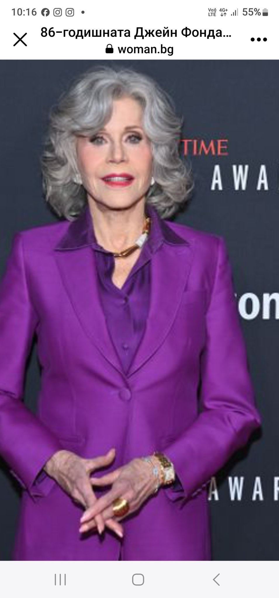 Една прекрасна дама с белезникава коса! На 86 е, Джейн Фонда!
