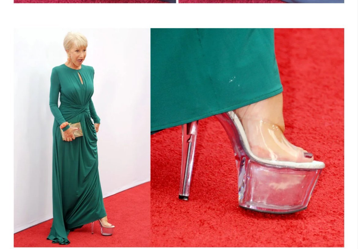 Е, великата Helen Mirren едва ли ще си развали рахата и комфорта само защото някой можело да си помисли, че не е достатъчно стилна и краката и са по-къси от тези на 16 год манекенка Wink  Когато и се налага да е гламурна го прави без задръжки!