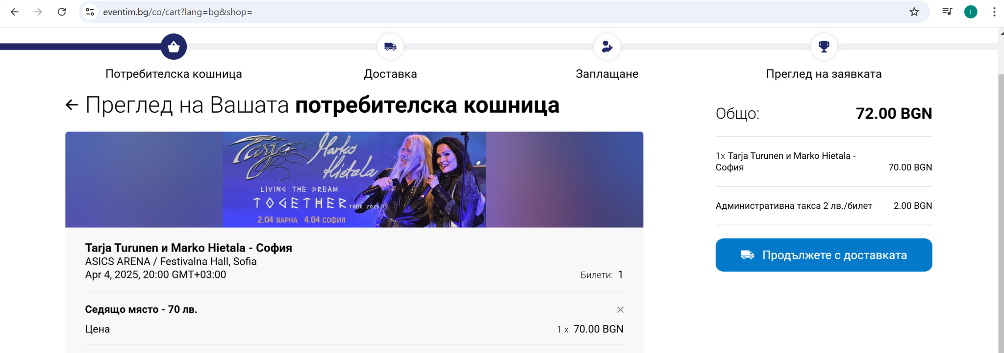 Аз ще ходя на този концерт в София. Знам къде е злата и преди съм ходила там близо до Плиска е. Eventim продават само билетите за Варна на 2 април. За София на 4 април има  още малко  билети можете да си купите от касите на Fast Pay и магазини „На тъмно“