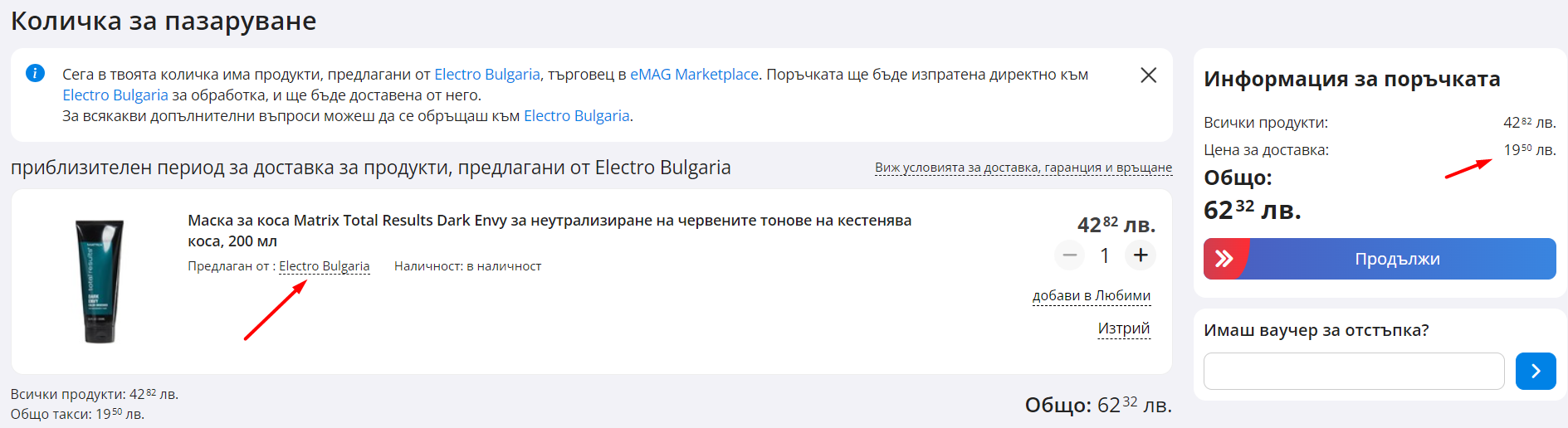 С избран търговец, различен от Емаг, излизат големи суми за доставка. Не с всички, но с някои и съответно трябва да се внимава. Не само доставката да е от емаг, но и продажбата да е от тях.