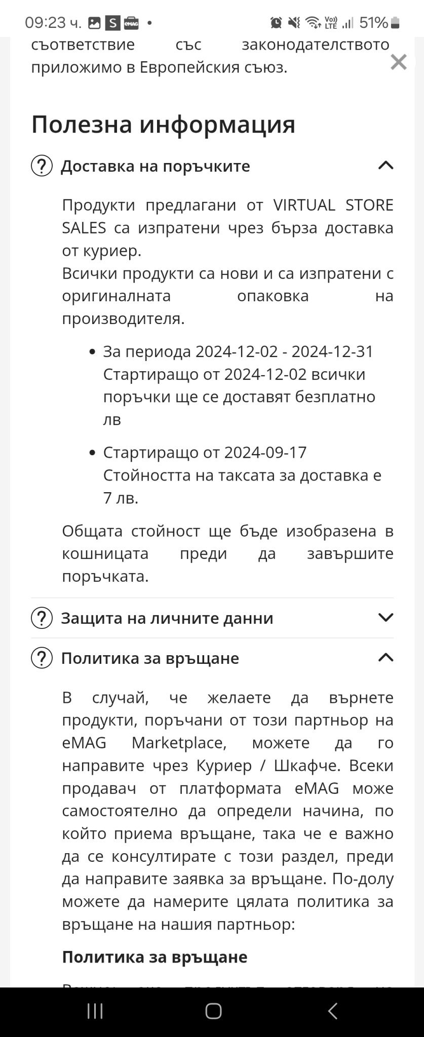 Цъкни на името на търговеца и чети в раздел доставки какви са условията му.