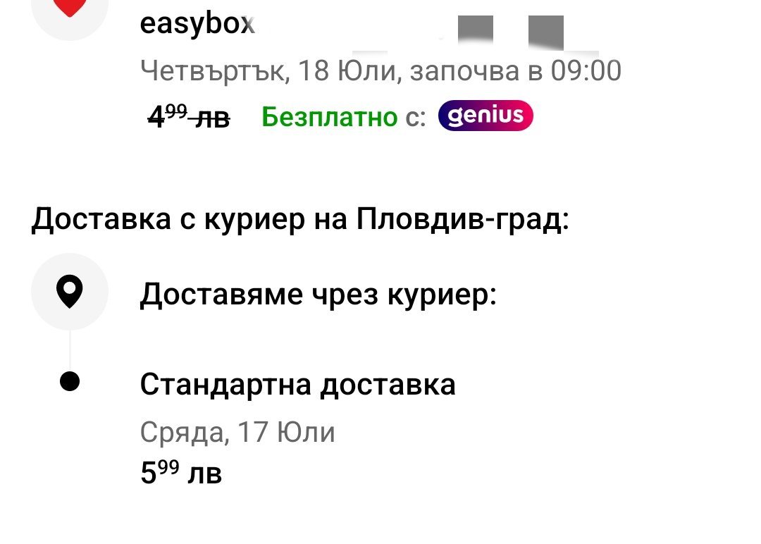 Аз само да кажа, че току що получих информация, че нещата, които съм поръчала да се донесат на адрес, са оставени в някакъв бокс по тяхно усмотрение... не ми се мисли какво ще извадя от тоя бокс, който е на километри от адреса за доставка
