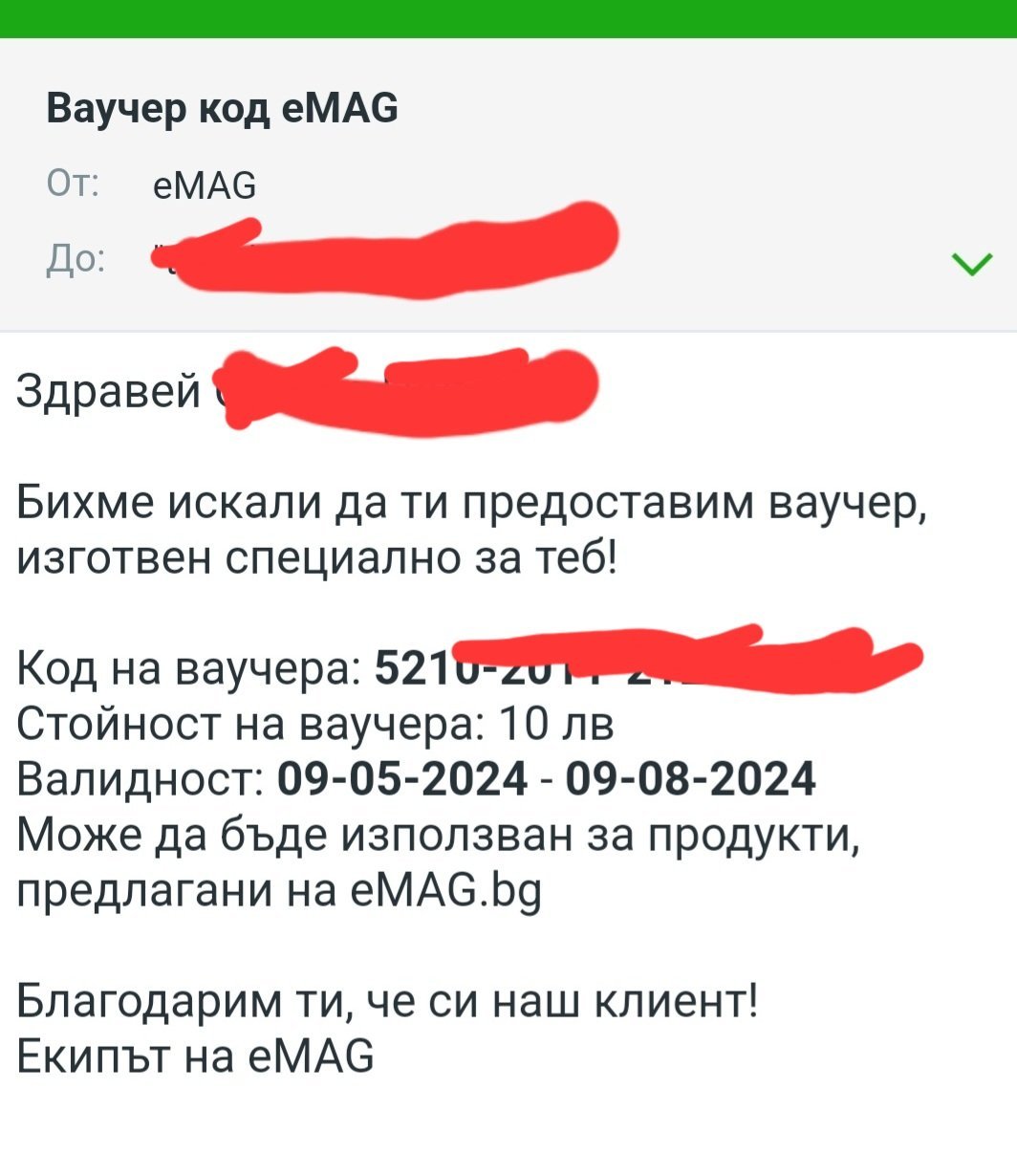 Ох, върнах да чета малко по-назад и изтръпнах. Вчера поръчах подарък на ММ, който ми трябва да пристигне до тази неделя. Платих го с карта и сега виждам, че е от външна фирма. Иначе ми пише, че доставката ще е утре. Като куриер пише :Curier Bg. Та тук няма такъв куриер. Изобщо не знам да очаквам ли скоро да си получа пратката. На всичкото отгоре е някаква китайска фирма със седалище във Франция. Имам и фактура с логото на Емаг, но с данните на фирмата във Франция. Не знам това означва ли, че ЕМАГ нямат артикула на склад и се изпраща директно от доставчика.