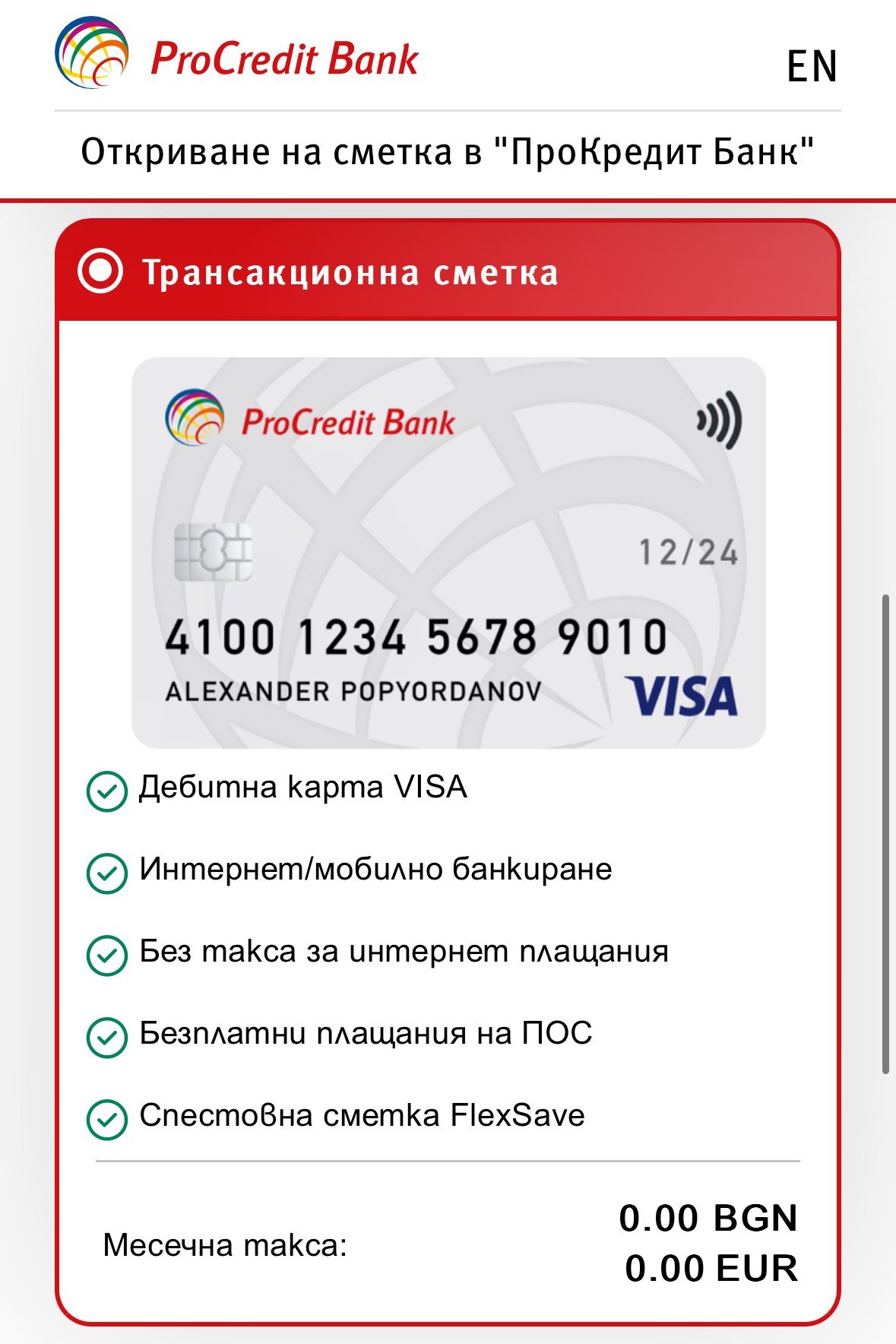 Мисля да открия спестовна сметка (лихвата е от 1.5% до 2.25%, в зависимост от периода) в ПроКредит, като с нея върви разплащателна сметка. Единия вариант - Трансакционна разплащателна сметка, е без месечна такса.