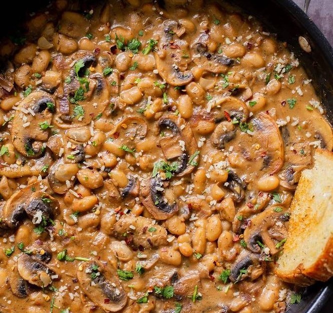 Зрял фасул с гъби яхния