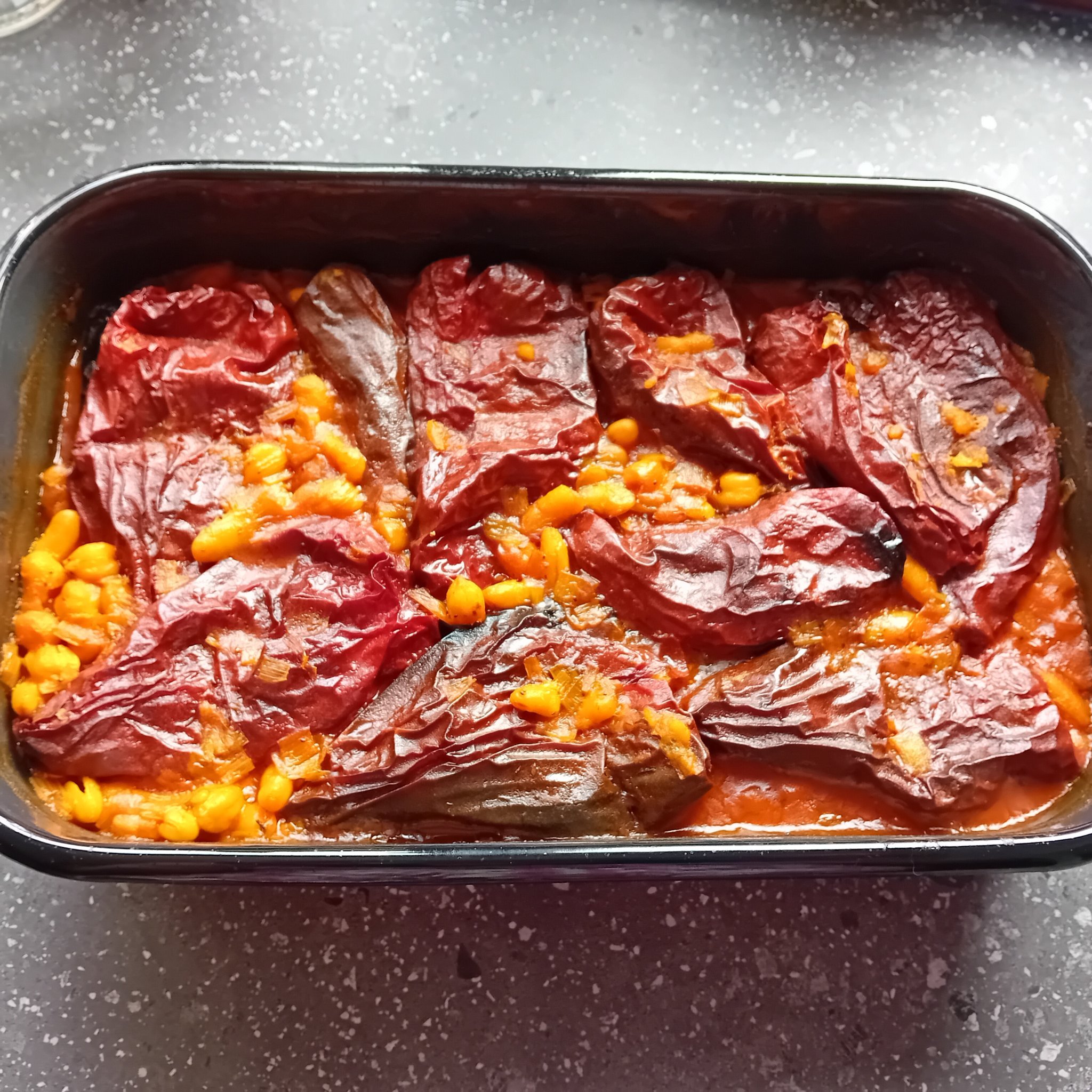 Запържвам повечко праз лук в олио. След това добавям боб от консерва, доливам чаша вода и подправям със сол, червен пипер и чубрица (много я харесвам, слагам я навсякъде). Като поизври водата, пълня чушките (предварително накиснати в гореща вода), подреждам в тавичка, ръсвам отгоре малко мазнина и запичам във фурната.