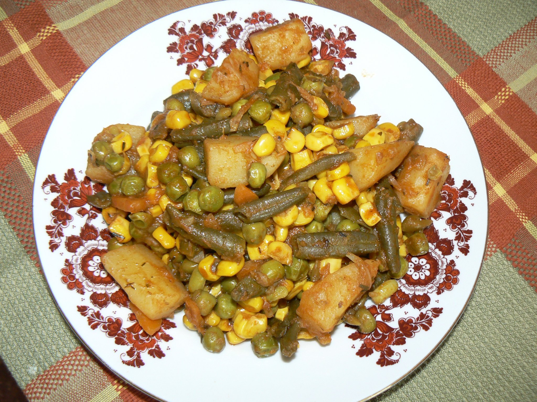От посочените продукти, както и други замразени или консерви, с които разполагам правя вкусна зеленчукова мусака. Зеленчуците се задушават в тавичка и когато са омекнали и готови върху тях се слага картофено пюре, а най-отгоре настърган кашкавал и се запича.