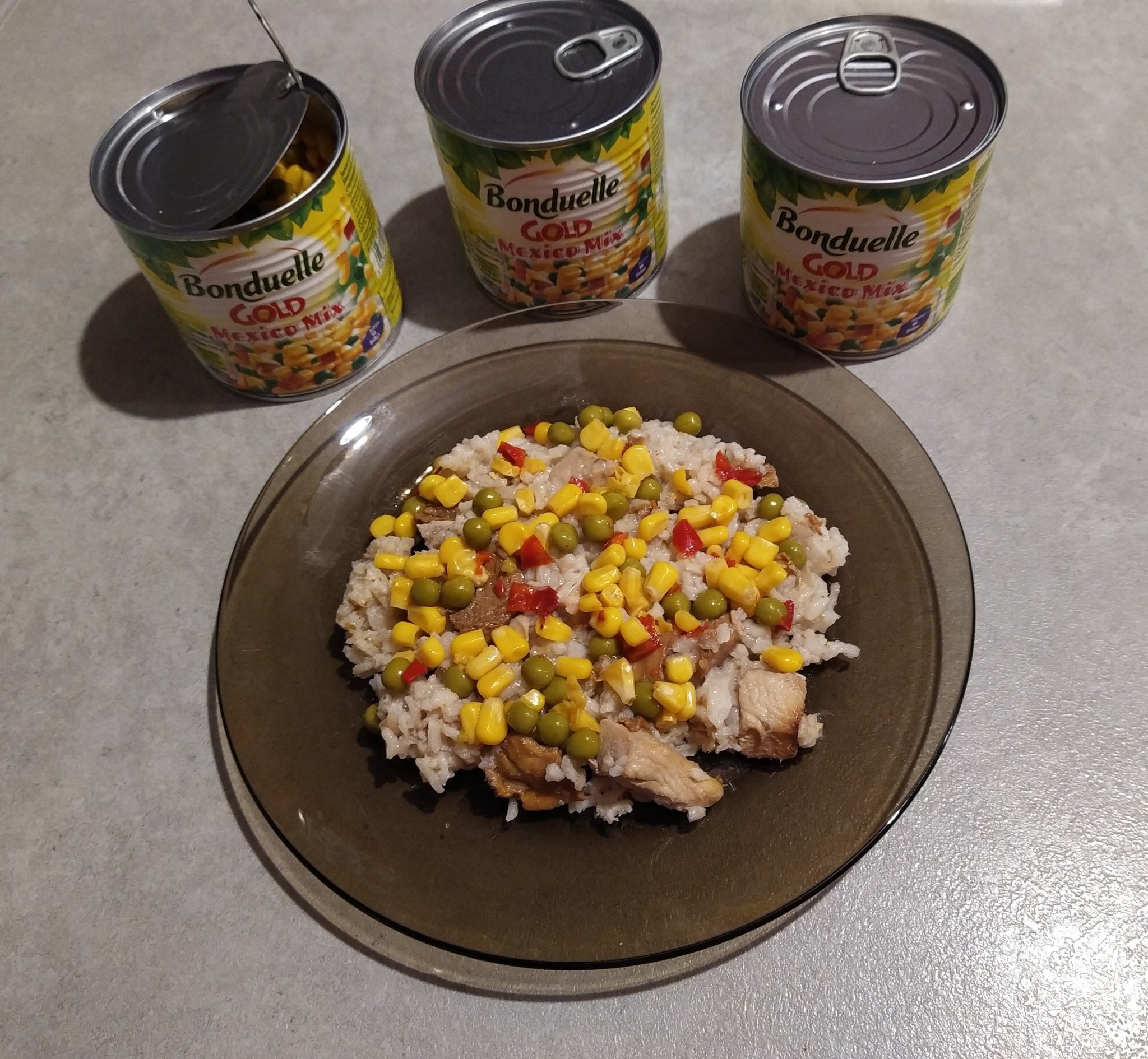 Вкъщи обожаваме Bonduelle Gold Mexico Mix, който съдържа царевица, грах и червена чушка. 👌 Обичам да го добавям към печено свинско месо с ориз на фурна, а също и към салатка от домати и краставици.