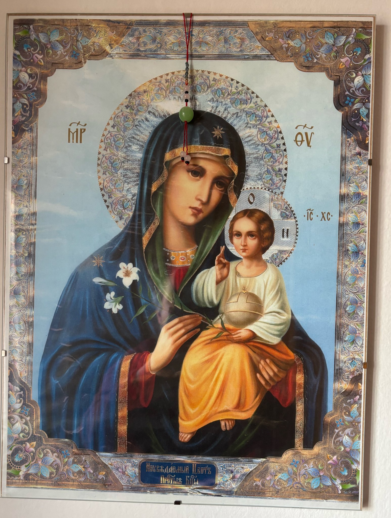 Като сме почнали за медитации да ви разкажа и аз, когато почнах да медитирам се чувствах добре, обхващаше ме радост и се чувствах леко. При една медитация видях икона на Богородица в синьо наметало и с Иисус и ореола беше сребърен. Доста ме очуди, защото Богородица винаги съм я виждала с червено наметало и ореола е златен. Викам си нещо съм си измислила. Добре ама след няколко години, една приятелка на майка (стана много набожна на зрели години), ми подари когато се бях върнала и ѝ бяхме на гости, ми подари точно такава икона.