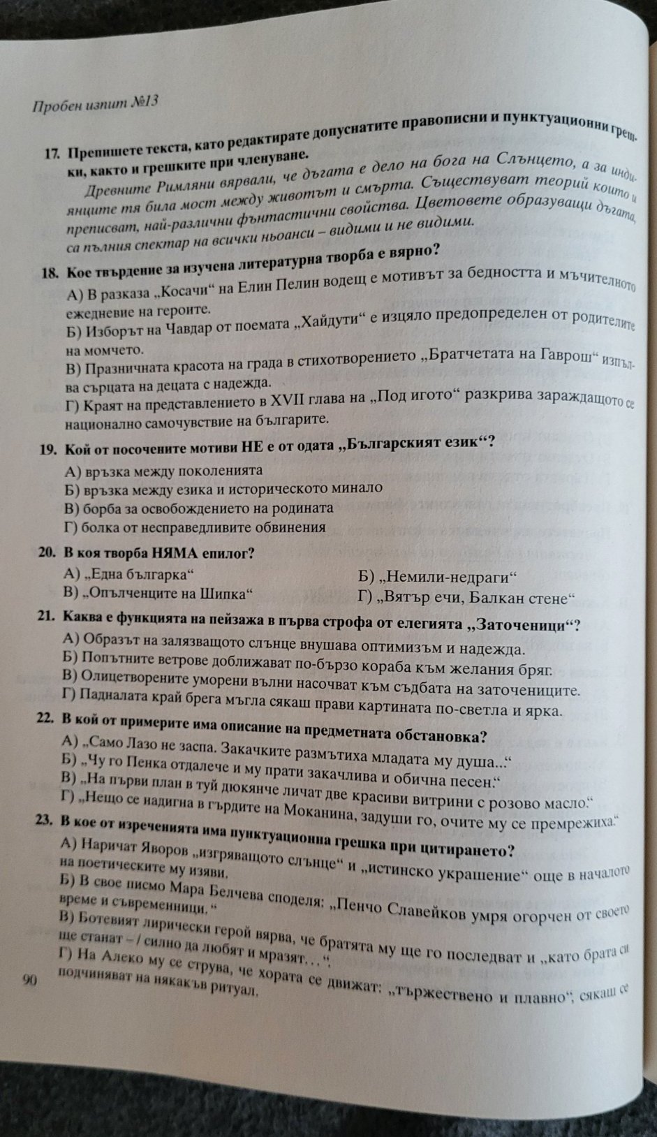 Здарвейте, ако някой има това помагало, може ли да ми снима тестове тестове 13, 14 и 15. Нашето очевидно е дефектно и липсват: