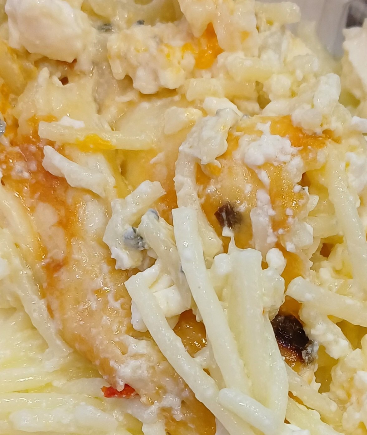 Лазаня и чушки с яйца , сирене и кашкавал и мляко с ориз.