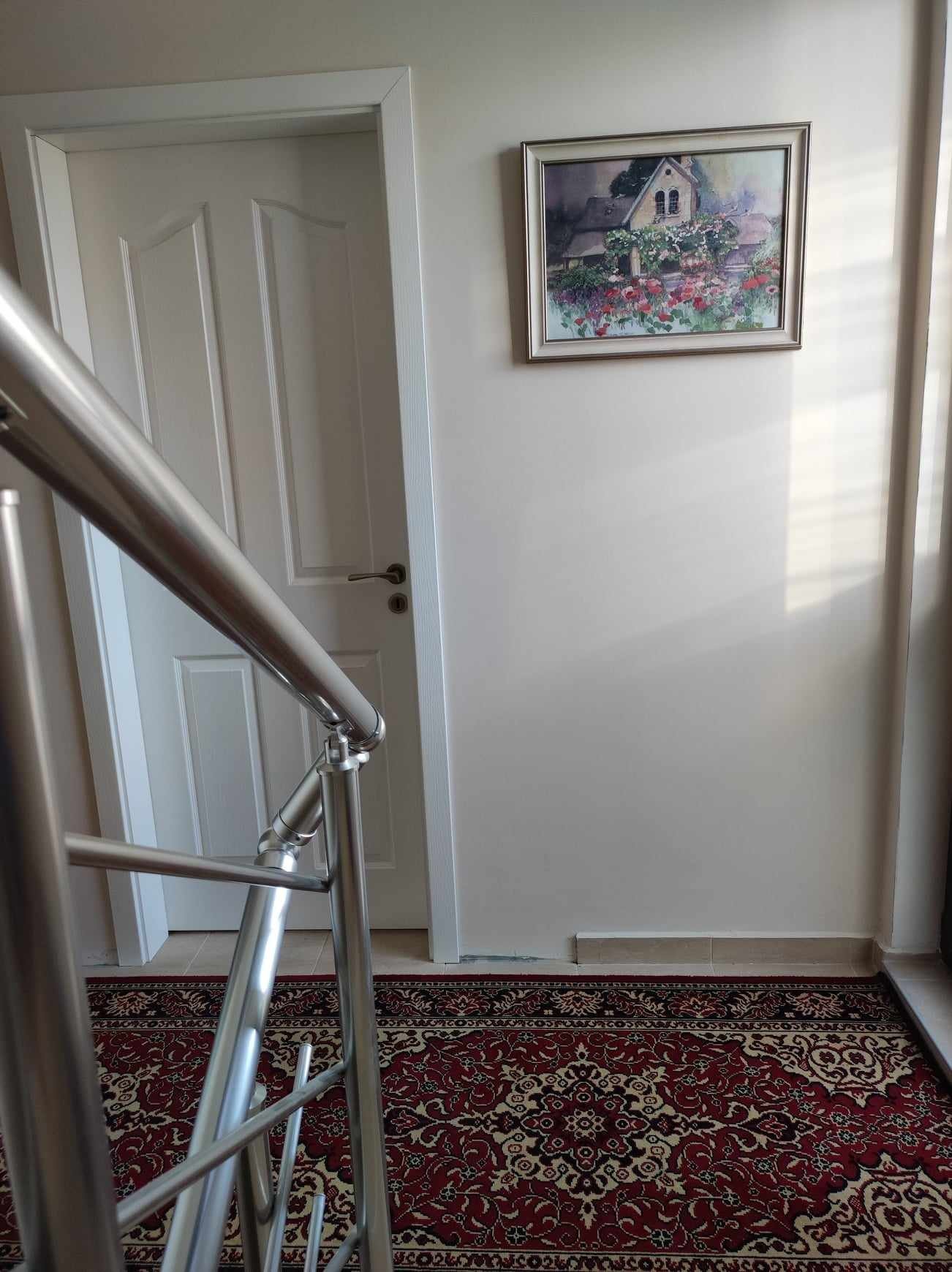 Тази пътека е на вторият етаж, етажа на спалните. Още не мога да преживея огромната си грешка дето избрах такъв вид гранитогрес - мат. Отвратителен е. Всяка капка и петънце все едно попива в него. С моп не се чисти. Трябва на колена и с четка с препарат да се чисти. Така чистя стълбите, хич не е приятно, затова съм сложила пътека. На първият етаж къде е входа имам едни изкуствени пътеки, та спасяват положението.