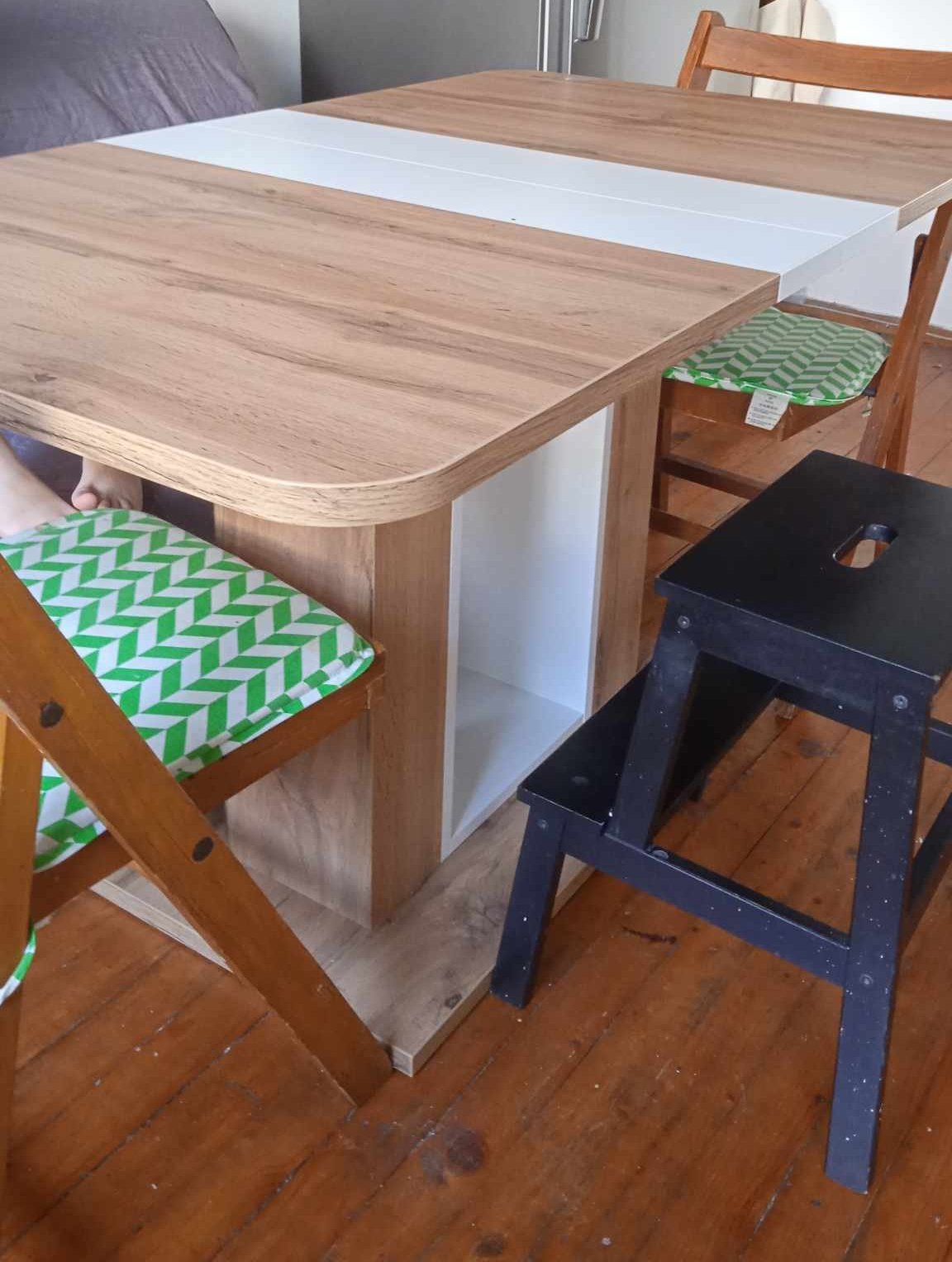 Дали да не ги оставя така и отгоре да ги мина само с някакъв лак? Имам остатък от Осмо. Или да им туря бялата боя? Или една част да е дърво, друга с бяла боя, за да ги вържа с масата?