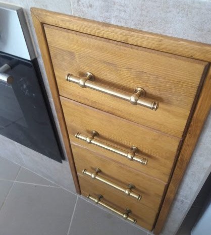 Правих такава кухня. Също поръчахме шкафовете от фирма от Велинград, но при поръчката казах, че не искам да ги лакират, а само хубаво да са шлайфани и от от всички страни еднакво. После си ги лакирах вкъщи с маслен лак на Бохемит цвят орех.
