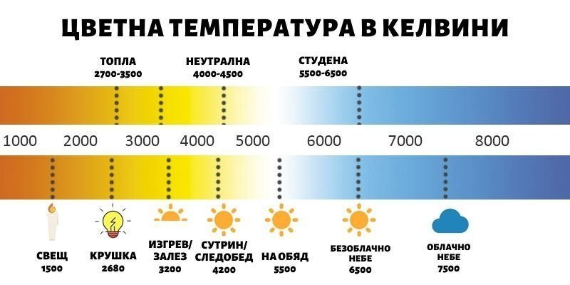 Може да има субективност в това кой какво харесва. Но инак Икеа примерно доста ясно дефинират кое е топла и кое студена светлина. За крушките на 4000К например пишат нещо от сорта на "излъчва студена бяла светлина с температура 4000 Келвина". А за 2700 "излъчва топла бяла светлина с температура 2700 Келвина.".