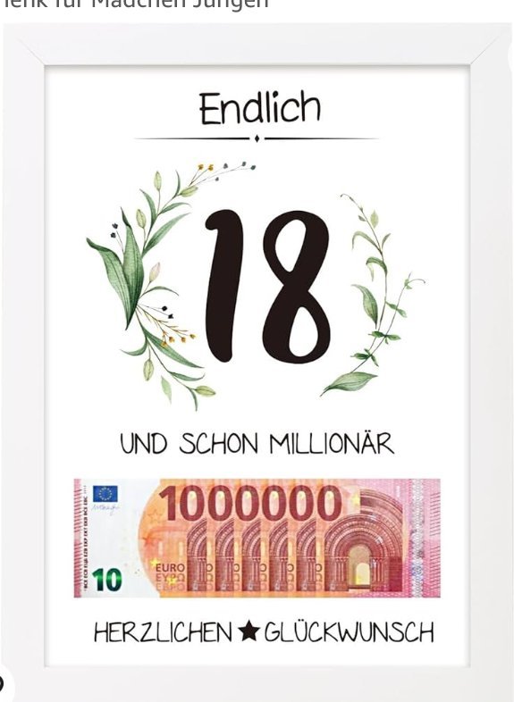 Може да направите такава рамка с пари, да се виждат само нулите. Надписът е “най-накрая на 18 и вече милионер”