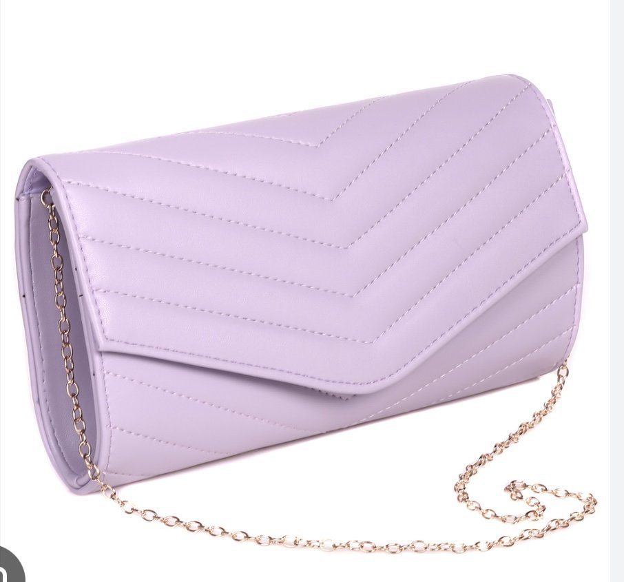 Роклята е нежна и клъч в наситени пастели няма да изглежда зле, само да е със златисти метални части :
