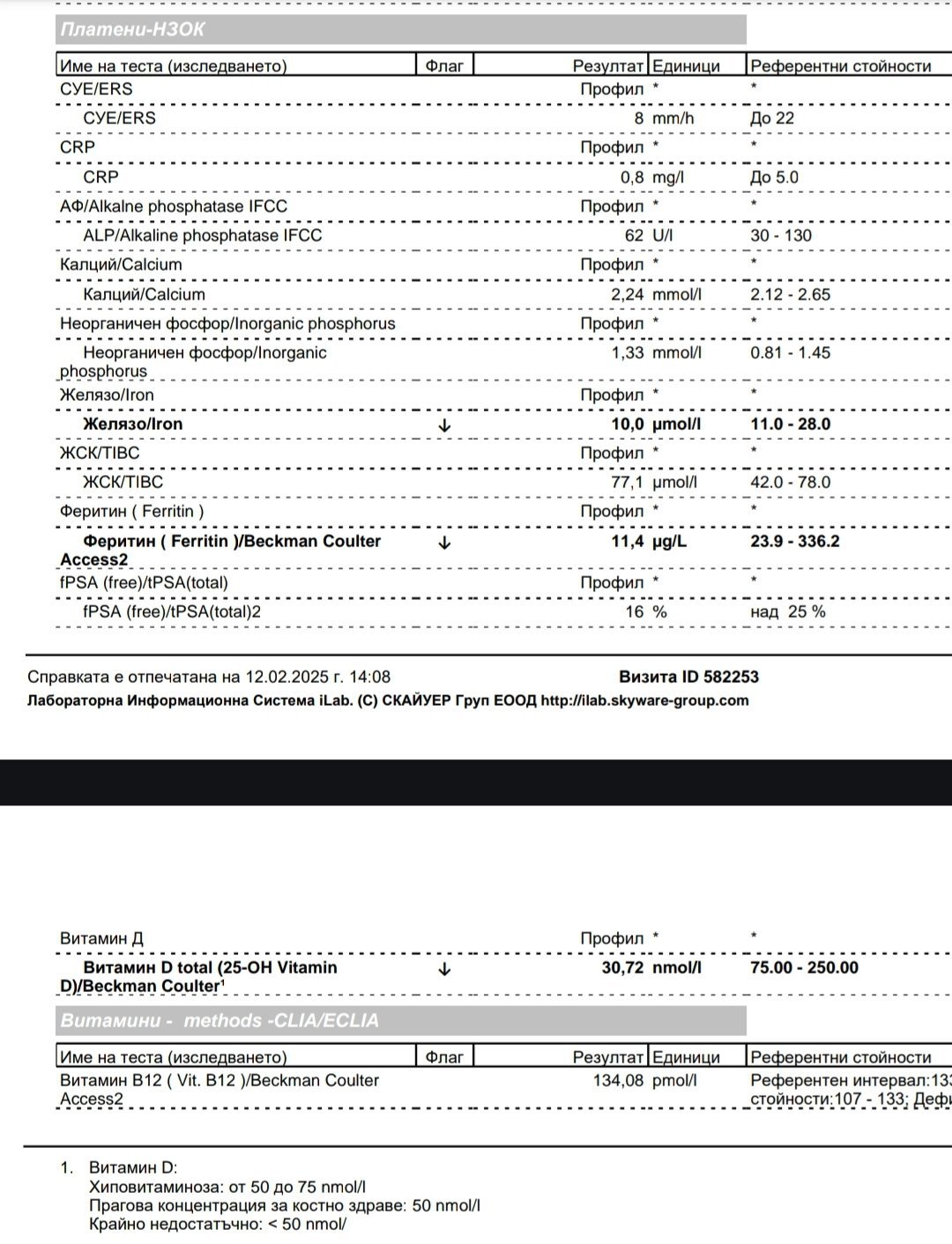 Може ли коментар по тези изследвания. Изписани са сорбифер по 1т/ден и 15к вигантол за ниските стойности на витамините. Това дали е достатъчно? Има ли друго притеснително?