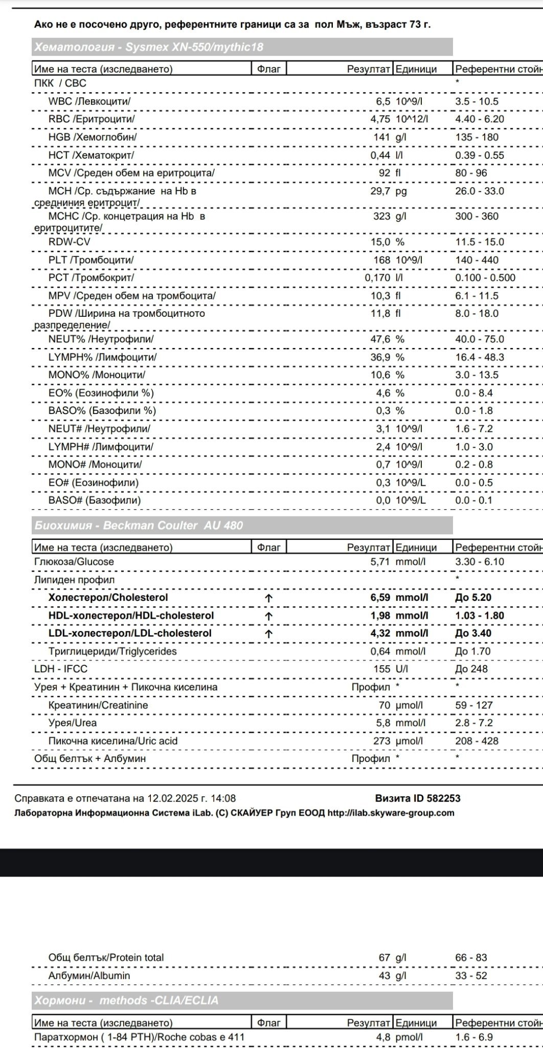 Липидният профил, в това число холестерол и фракциите на холестерола, са извън референтни стойности.
