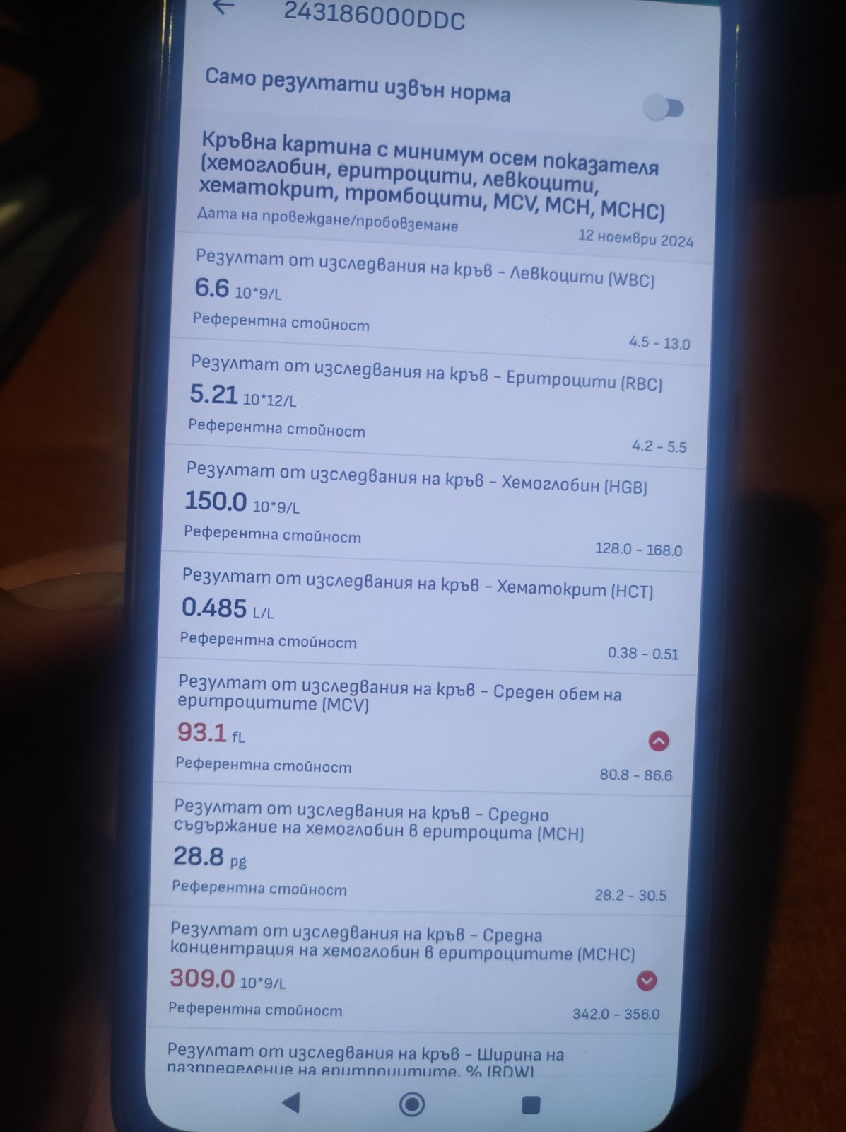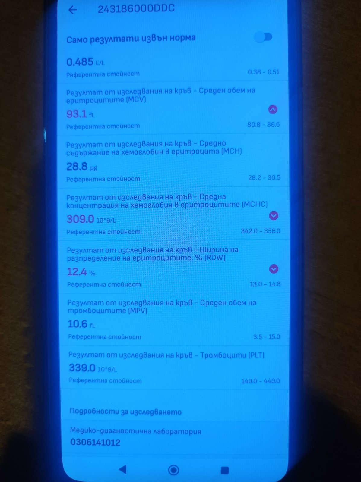 Дали е възможно да ми изпратите снимка на пълното изследване, имам предвид всички останали показатели, след което ще мога да Ви отговоря на въпроса.