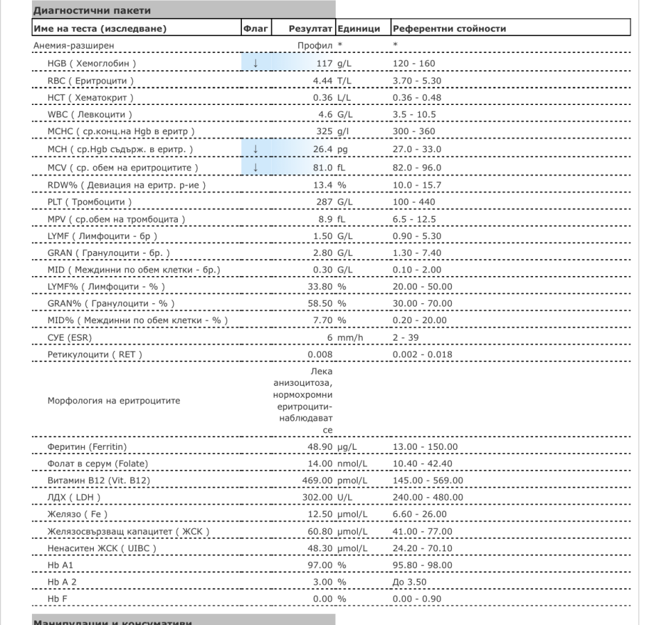 Здравейте д-р Симоноски!Качвам изследванията си и ще моля за насоки, винаги съм била с нисък хемоглобин, но под 103 не е падал.