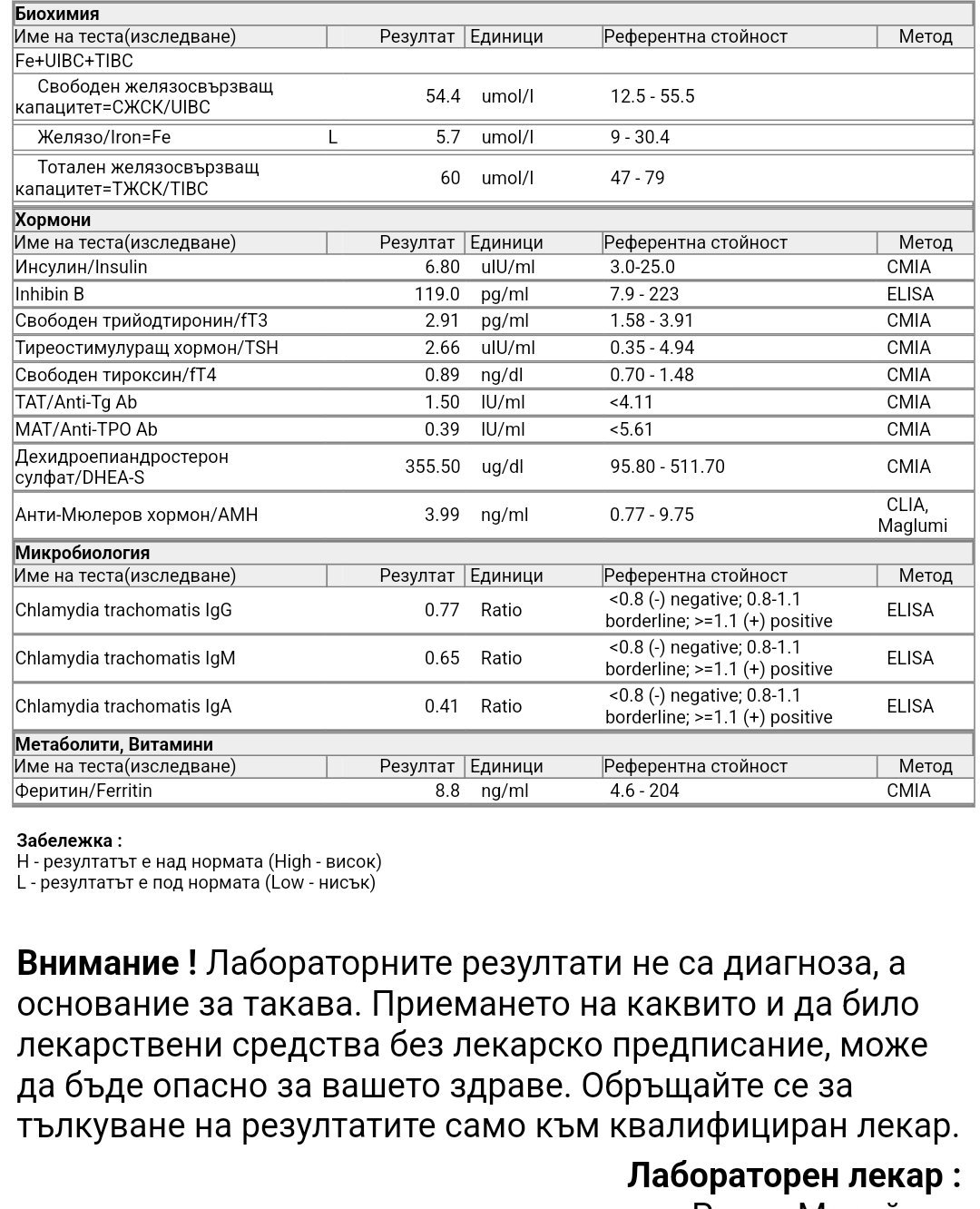 Здравейте, д-р Симоноски! Поради 3г неуспех тези изследвания ми бяха назначени от репродуктивния специалист, но нивата ми на желязо и феритин са много ниски за съжаление. Може ли да ми дадете съвет за добавки или витамини за вдигане на желязото? Прилагам снимки от изследванията ми.