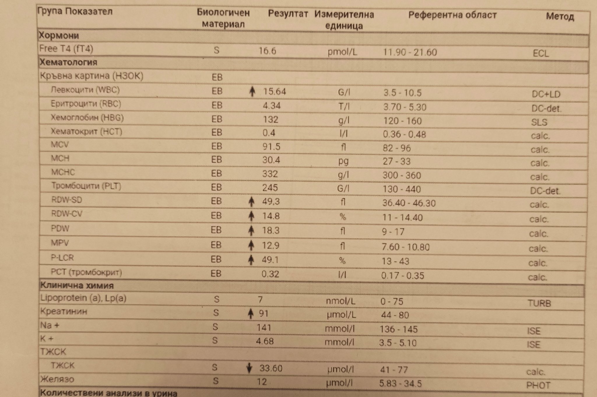 Моята препоръка е да проведете ново изследване, което ще включва ПКК, диференциално броене на левкоцити, СУЕ, ЦРП, и след това ще ги коментираме наново.