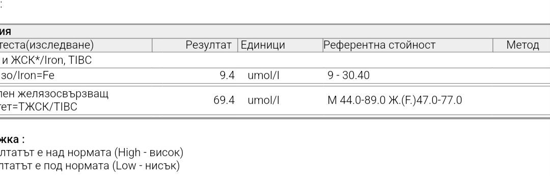 След посещение при ендокринолог бях насочена да си направя изследване на желязо и тжск заради резултатите от кръвната картина, която ми беше назначена.