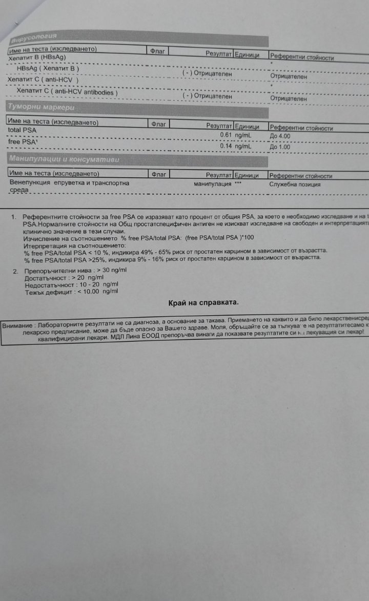Към предоставените от Вас изследвания, Вит Д, е извън стойностите. Тъй като Вит Д се влияе и от сезонността, смятам, че през предстоящия сезон ще бъде коригиран.