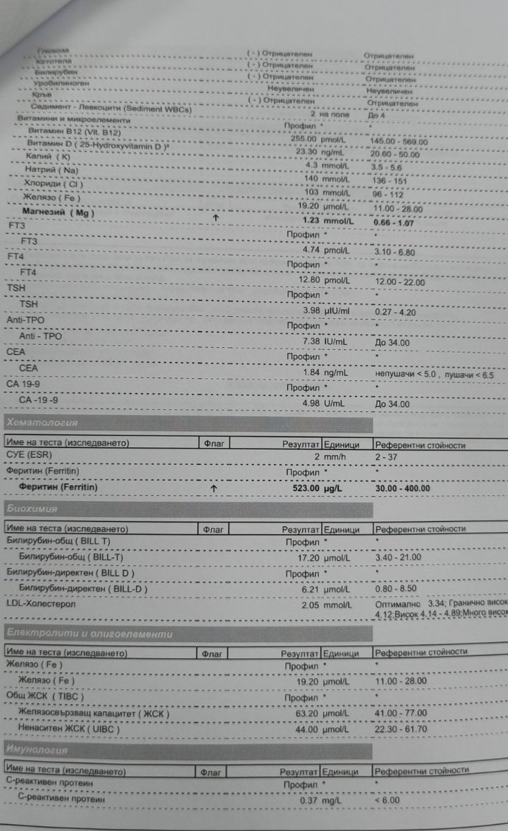За мен тези стойности на феритин ще се коригират във времето, но е добре да проследите показателите в динамика, т.е една контрола след 3 месеца.