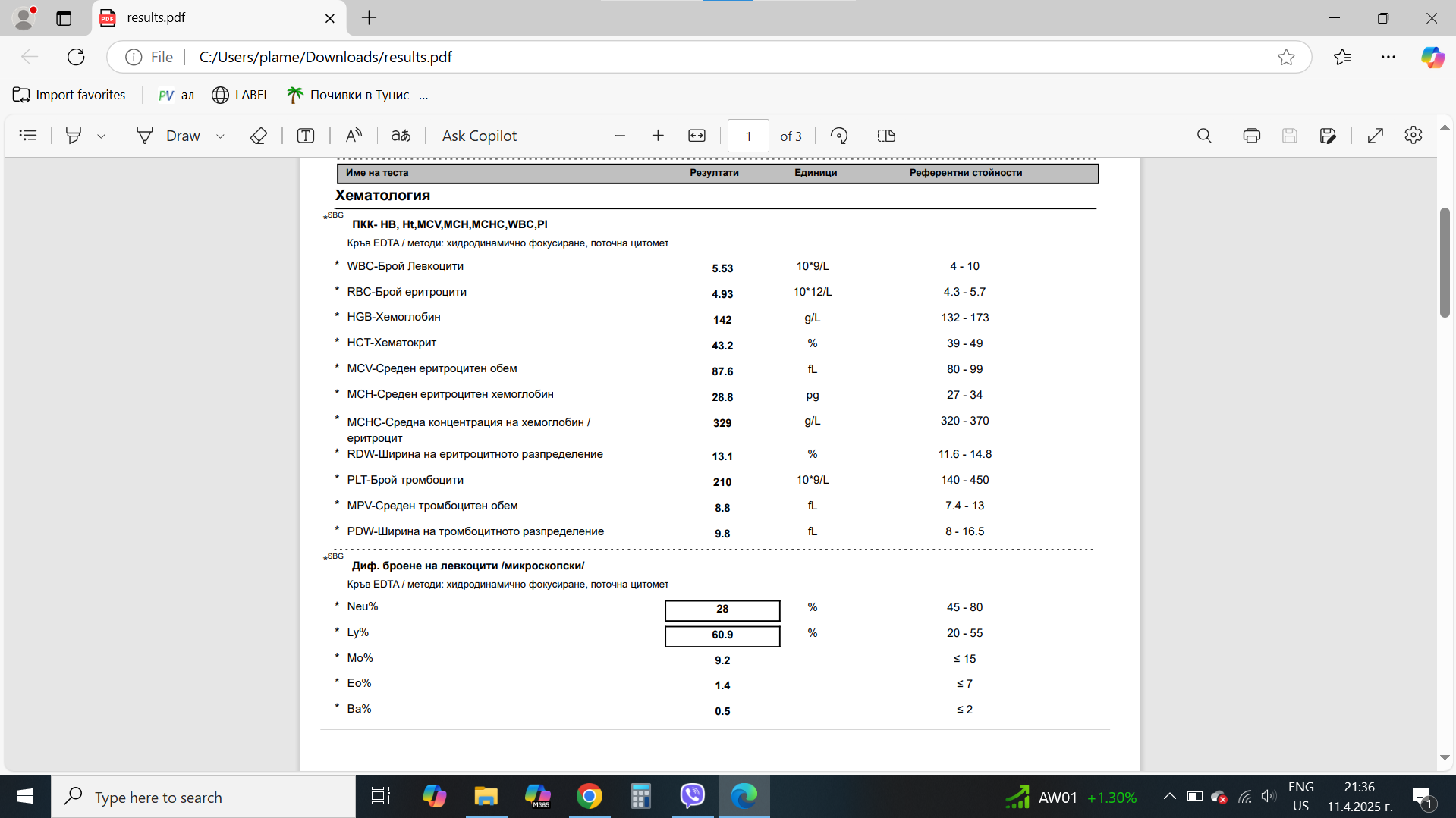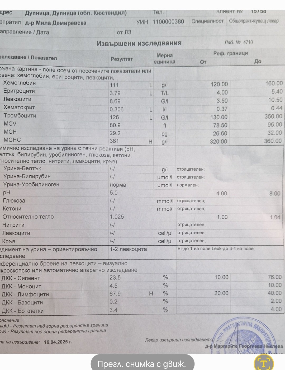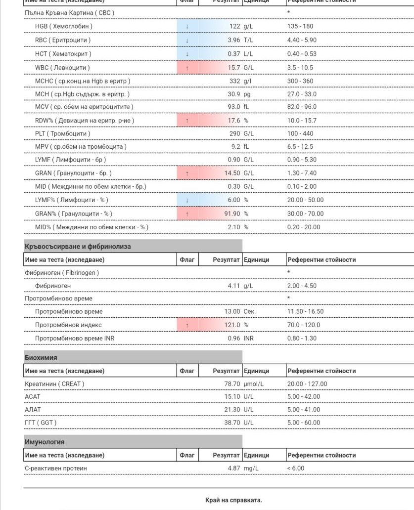 Благодаря за отговора,имаме и пкк от същото вземане на кръв . Прикачам го по долу.