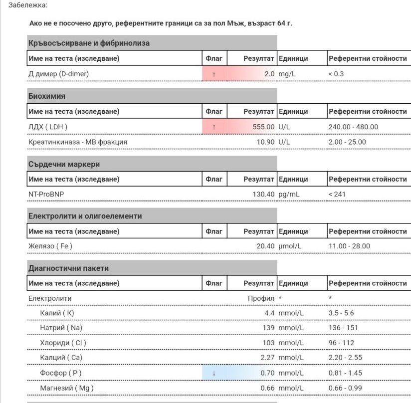 Здравейте, на брат ми, на 39 г. са му пуснали кръвни изследвания заради болки в белия дроб, тъй като след преглед и направена снимка не се е видяло нищо притеснително, но пулмологът е излязал в отпуск за 10 дни. Можете ли да помогнете с разчитането на резултатите, тъй като част от стойностите са доста извън нормата. Прилагам скрийншотове от резултатите: