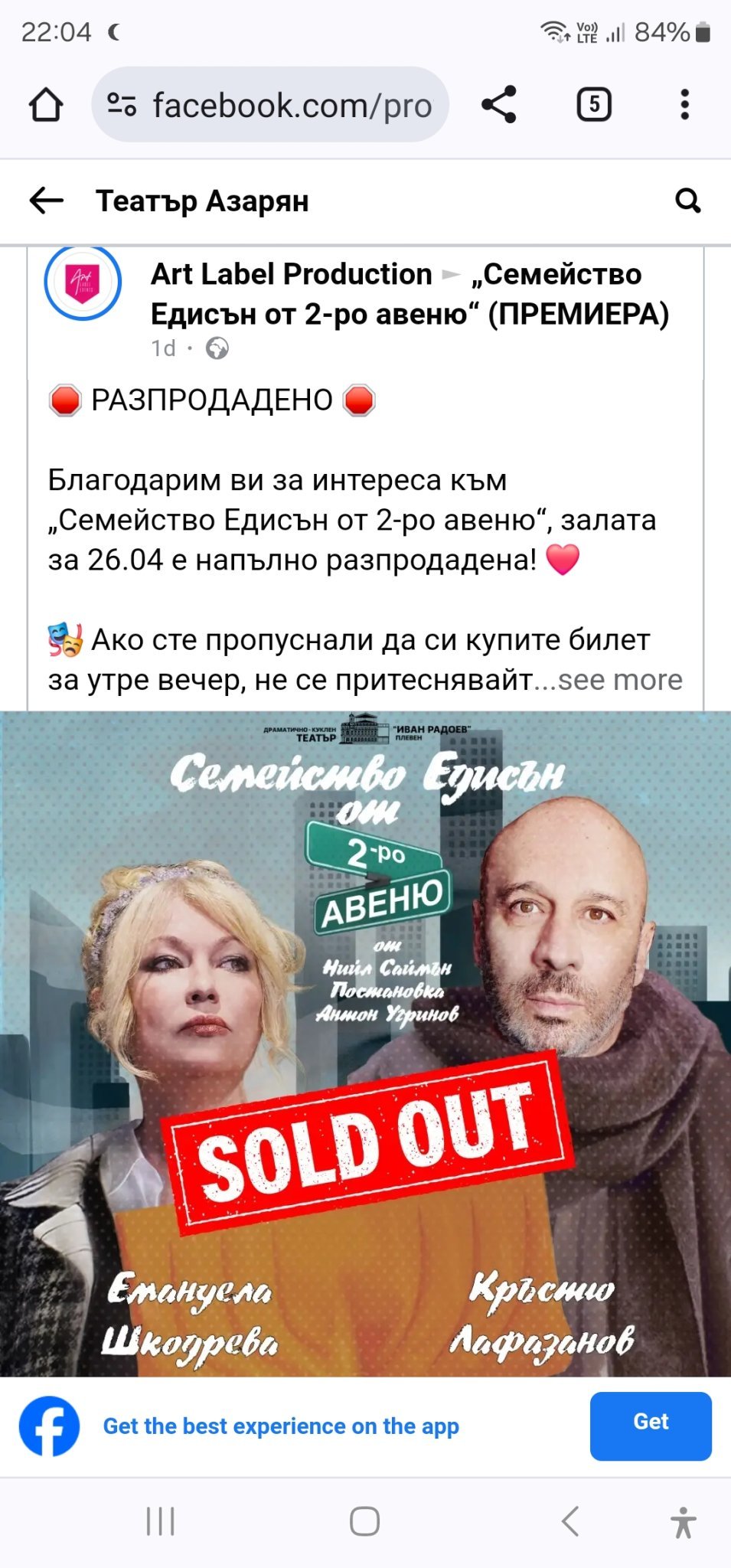 Бяхме на премиера на представление с Кр.Лафазанов и Е.Шкодрева и повторно откриване на Театър Азарян в НДК - Нона Йотова видях, много актьори, нищо не ме впечатли ...Хубава е пиесата: