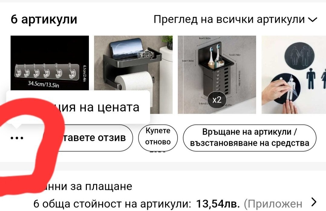 Имам поръчка от 10 април, на която изчезна бутона още преди края на април. Преди това си го откривах в трите точки. На други поръчки също ми се случва. Явно не е 30 дни периода.