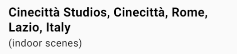 Последванията, които виждаме, са заснети в Рим, в Cinecitta, където е възстановено